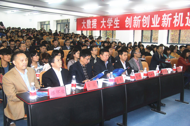 讲座伊始,赵总工程师以“实施云端计划,抢抓大数据”为题,介绍了大数据在当今社会的重要地位,重庆在大数据发展中取得的重大进展,以及云计算发展面临的挑战,提出面对大数据时代的应对策略。接着,中国电信重庆分公司企业信息化部主任雷波就“中国电信大数据的应用”为题分享了大数据在中国电信重庆分公司的应用;重庆市地税局信息科科长陈怀俊以生活中的事例阐述了大数据应用的广泛性;亿赞普国际电子商务有限公司业务拓展总监王颖就“大数据时代我们能做什么”给出了独到的见解;中国惠普高级顾问崔磊以“大数据的价值”为题分析了大数据的应用前景,并展示了惠普两江数据云未来图景。最后,重庆云威科技CEO李力,以一名在读研究生兼创业者的身份分享了他的创业经验,引起同学们强烈共鸣。