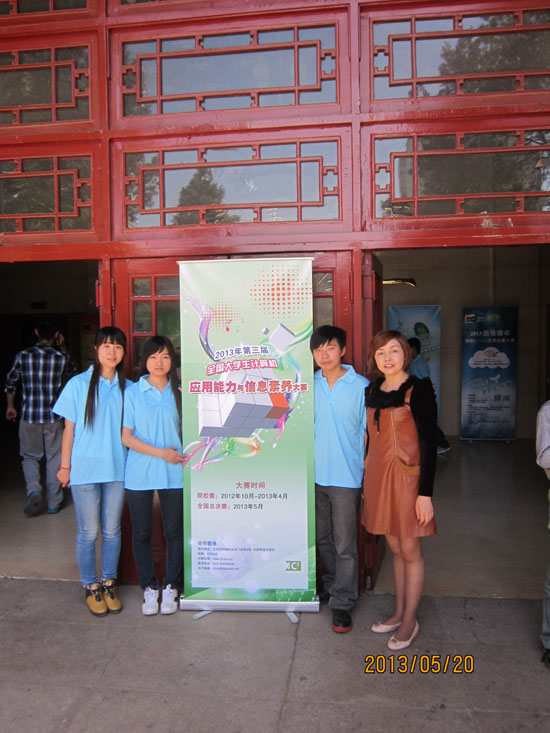 据悉,“2013年第三届全国大学生计算机应用能力与信息素养大赛”是由全国高等院校计算机基础教育研究会、全国高等学校计算机教育研究会、高等职业技术教育研究会、教育部高等学校计算机基础教程教学指导委员会联合主办,有188所高校参加,参赛人数共442人,每个院校设一名领队,参赛选手不得超过3人,分本科组和高职院两个组别。大赛共分两轮竞赛,第一轮竞赛内容为计算机基础、常用软件和网络与安全三个科目内容的综合,第二轮竞赛(海峡两岸邀请赛)内容以计算机基本技能(IC3)为基础,完成一项能体现计算机思维和信息应用能力的综合性任务,所有竞赛均采用在线答题方式进行,最后根据选手成绩评定奖项。