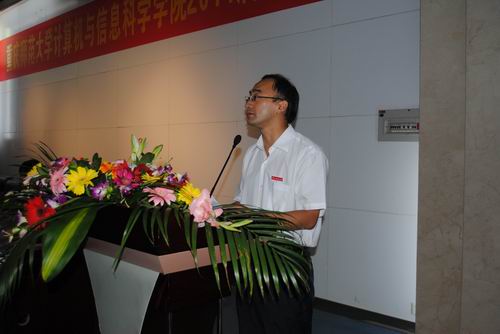 接受赠礼并击鼓激励人心,全体同学起立高呼:“计信计信,团结奋进!”,雄壮的口号在报告厅久久回荡……随后,刘书记致辞,殷切地希望各位毕业生志存高远、勇于实践、增长才干,创造佳绩、回报母校、报效祖国。