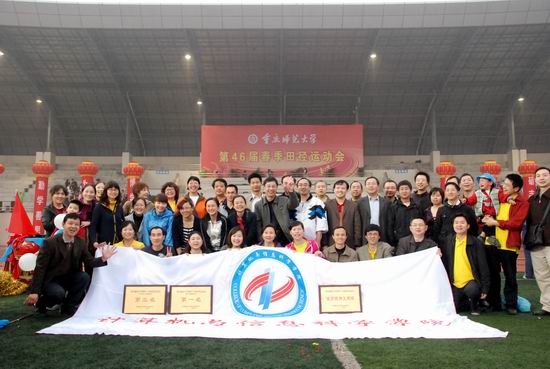 继去年第四十五届春季田径运动会,新麻将游戏网页版 第一次亮相田径场便获得教工团体总分第一名、体育精神文明奖后,本次田径运动会再次蝉联教工团体总分第一名和体育精神文明奖!