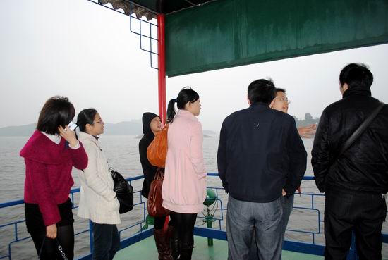 柚香浮动酝吉瑞,花映碧波漾秋色,鱼跃鸥翔云影飞,湖光山色惹人醉。秋冬交际时节游览长寿湖别有一番韵味:品农家菜、食生态鱼、摘长寿柚,使老师们身心回归了自然;寒风瑟瑟游长寿湖,若临暮春三秋,浅云遮日,烟波浩渺,水天一色,更是另一番情趣,仿佛置身于恍若隔世浪漫的水上世界,使老师们心情无比惬意。