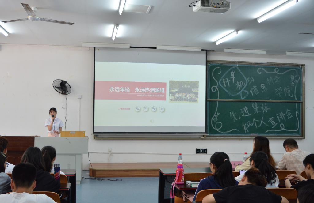 九层之台,起于垒土;千里之行,始于足下。先进集体的建设归功于组织领导者与集体所有人的共同努力。在先进集体宣讲中,先进集体班团通过展示上一学年团支部工作成果并进行个人述职,集中展现了班级特色、班级凝聚力、班级荣誉等,彰显出自己独特的风采。2017级软件工程1、2班班长徐昊在代表先进班集体进行宣讲时,以丰富多彩的组织生活与积极正向的集体精神风貌做出先进集体的优秀示范。文明寝室代表——2017级信管文明寝室室长潘玉婷号召同学们互相帮助、共同成长、不负韶华、共创文明寝室。