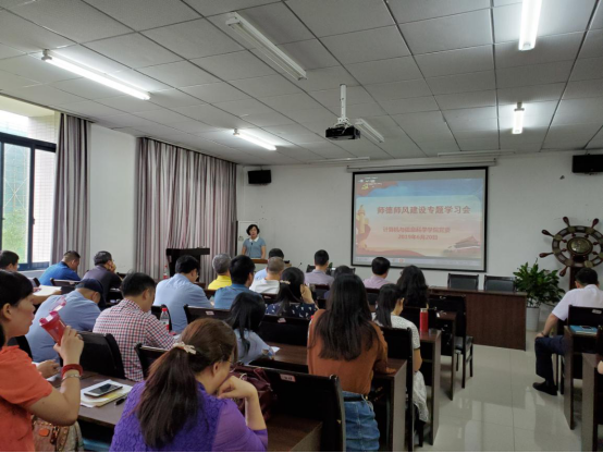 组织开展师德师风建设专题学习会。全院教职员工参加,学习会由院党委书记陈兰讲授。