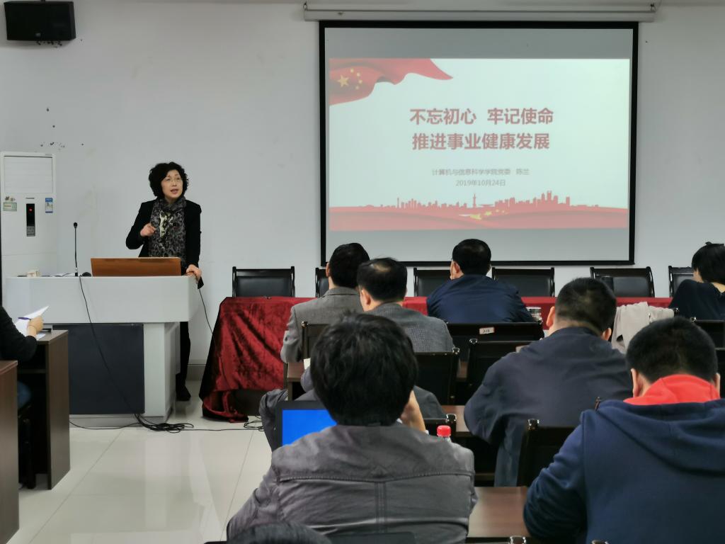 党委书记陈兰同志给全院教师党员上了一场题目为“不忘初心、牢记使命,推进事业健康发展”主题教育专题党课。