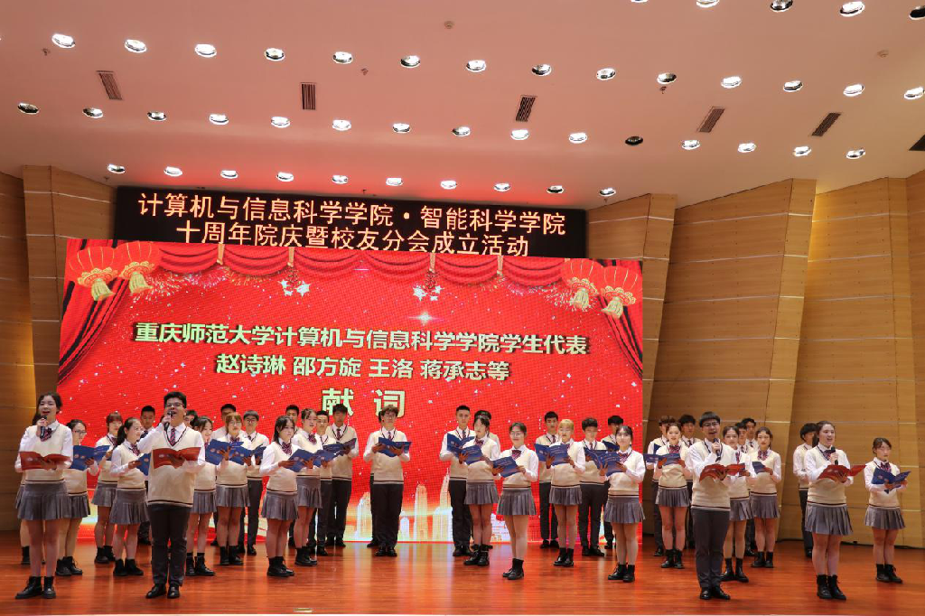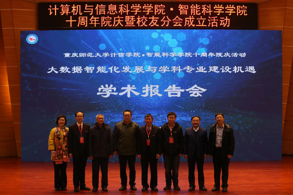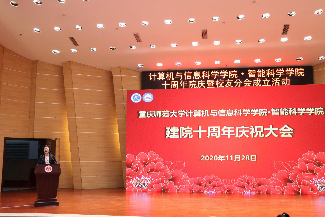 建院十周年庆祝大会,出席会议的领导和嘉宾有重庆师范大学纪委书记肖应红教授,中国人工智能学会副理事长、重庆人工智能学会理事长、重庆邮电大学副校长王国胤教授,全国高等学校计算机教育研究会师范教育分会副理事长、南京师范大学计算机与电子信息麻将游戏网页版