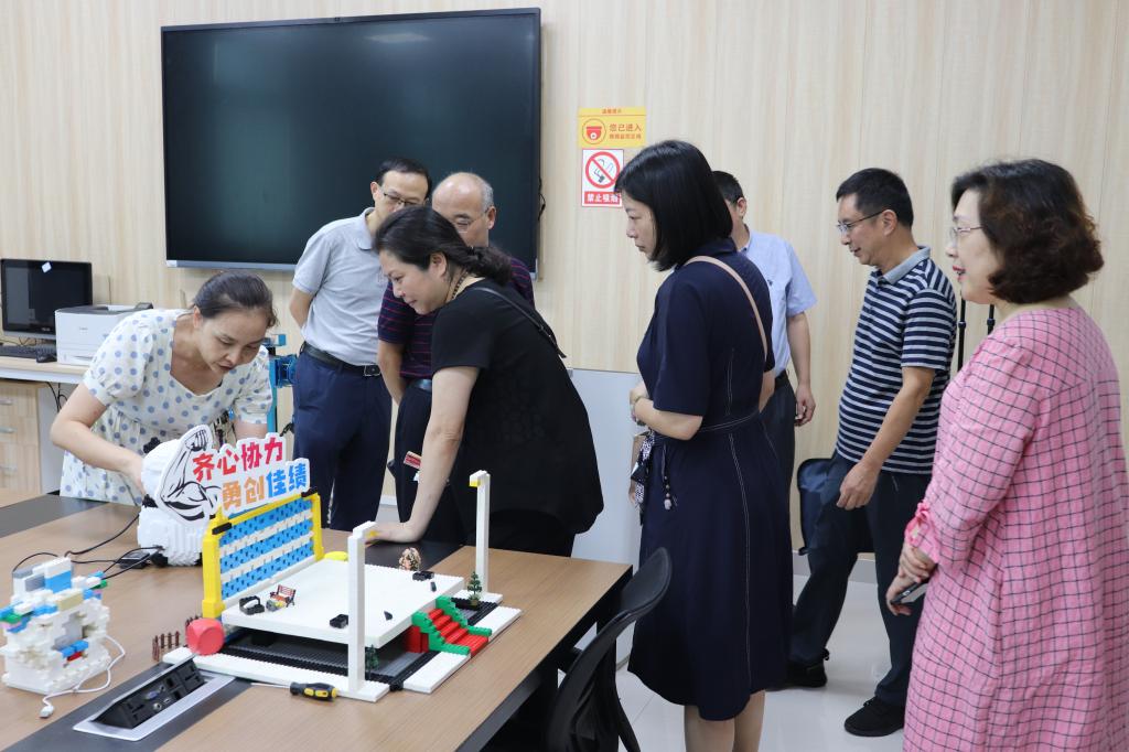 目前,我校智慧教育研究院已建立了智慧教育评价、虚拟仿真、脑电与眼动分析、教育机器人、智慧录播、特殊儿童智能评价等实验室。领导一行分别对每个实验室进行了现场考察与观摩,作品展示等,并饶有兴趣地观看研究生创新实践活动。在调研过程中,对实验室建设现状与未来发展、项目开展情况等开展了研讨与交流,并指出智慧教育研究院一定要瞄准应用前沿、进一步凝练方向、力争打造特色。