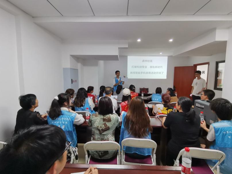 “大学生老师来了……”参与培训的社区居民陈阿姨说,“现在高科技越来越多了,我们这些老年人已经跟不上社会的脚步了,我平常就爱拍点抖音,这些高科技软件,运用起来不得诀窍,今天有老师教我们怎么用,我们老年人也可以跨进科技时代了。”