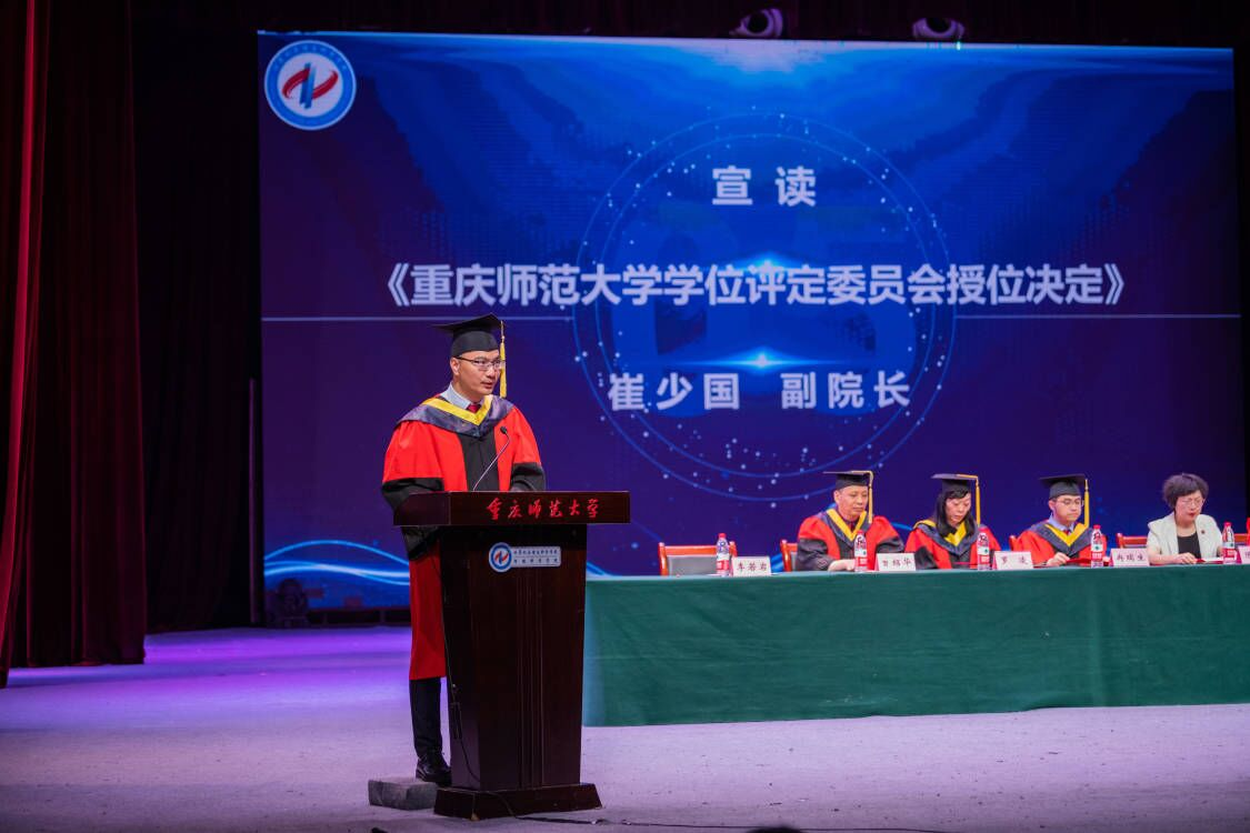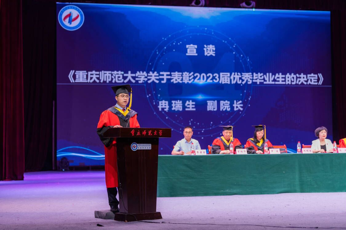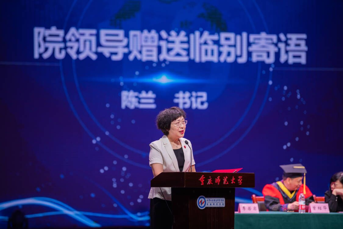 离别之际,陈兰书记致辞,她嘱咐同学们在前行路上,请将大爱守护精神家园,将学习养成终身习惯,并保存谦虚乐观豁达之心。鼓励同学们要无畏困难,谱写人生的美好篇章。冉瑞生副院长宣读《重庆师范大学关于表彰2023届优秀(优良)毕业生的决定》,崔少国副院长宣读重庆师范大学学位委员会授位决定。魏延院长宣读校友理事名单并亲自颁发聘书。随后,魏延院长为毕业硕士生、本科生授予学位并颁发证书,一起合影留念,共同见证2023届毕业生的高光时刻。