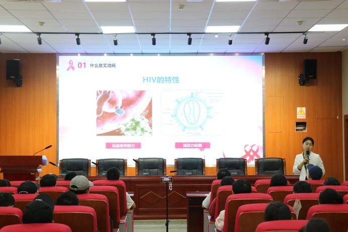 本次活动由健康科普知识讲座和心理中心参观两部分内容组成。在科普讲座现场,校医院刘琴老师从艾滋病的传播途径、影响等方面讲述了艾滋病对人的危害,在讲座过程中,团学会成员为同学们分发防艾相关手册,随后刘琴老师通过实例和相关数据告诉同学们预防艾滋病不能掉以轻心,一定要时刻警惕。同时分别从生理和心理两方面向同学们介绍了健康的意义,列举了生活中常见的疾病与心理上可能出现的问题,也着重强调了心理的健康不容忽视。