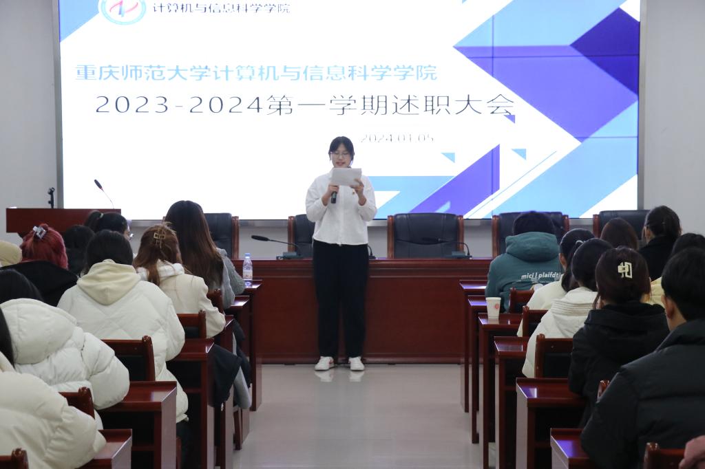 在致用楼319开展团委学生会2023-2024第一学期述职总结大会。团委书记、学工办主任钟华与团学会全体成员参加。