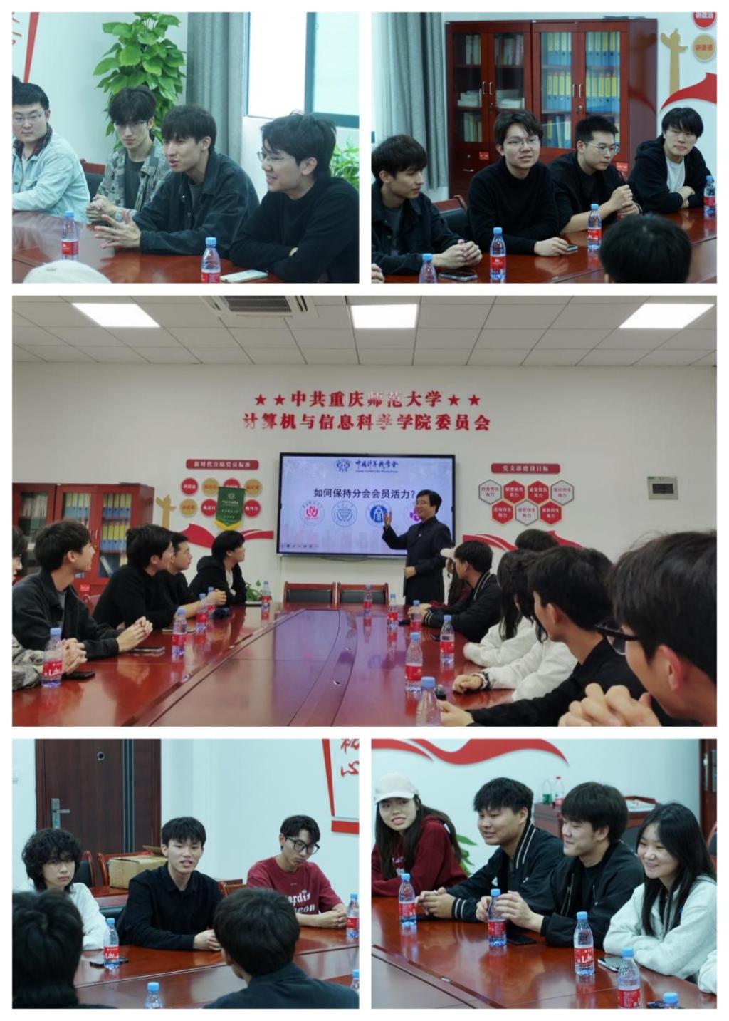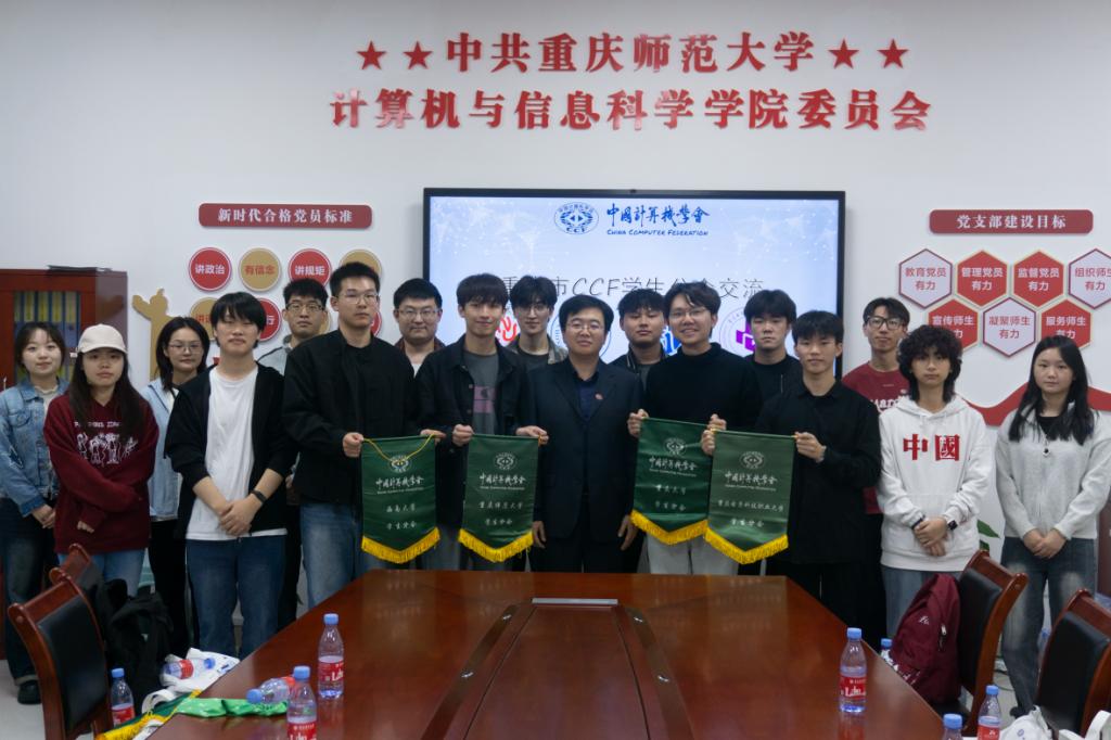2024年10月19日,在重庆师范大学迎来70周年校庆之际,CCF(中国计算机学会)重庆师范大学学生分会邀请了来自重庆大学、西南大学和重庆电子科技职业大学的学生分会代表,成功举办了一场四校联合的参观交流活动。此次活动中,各学生分会分享了工作经验,加强了重庆地区CCF学生分会之间的联系,促进了重庆市CCF学生分会的合作与交流。