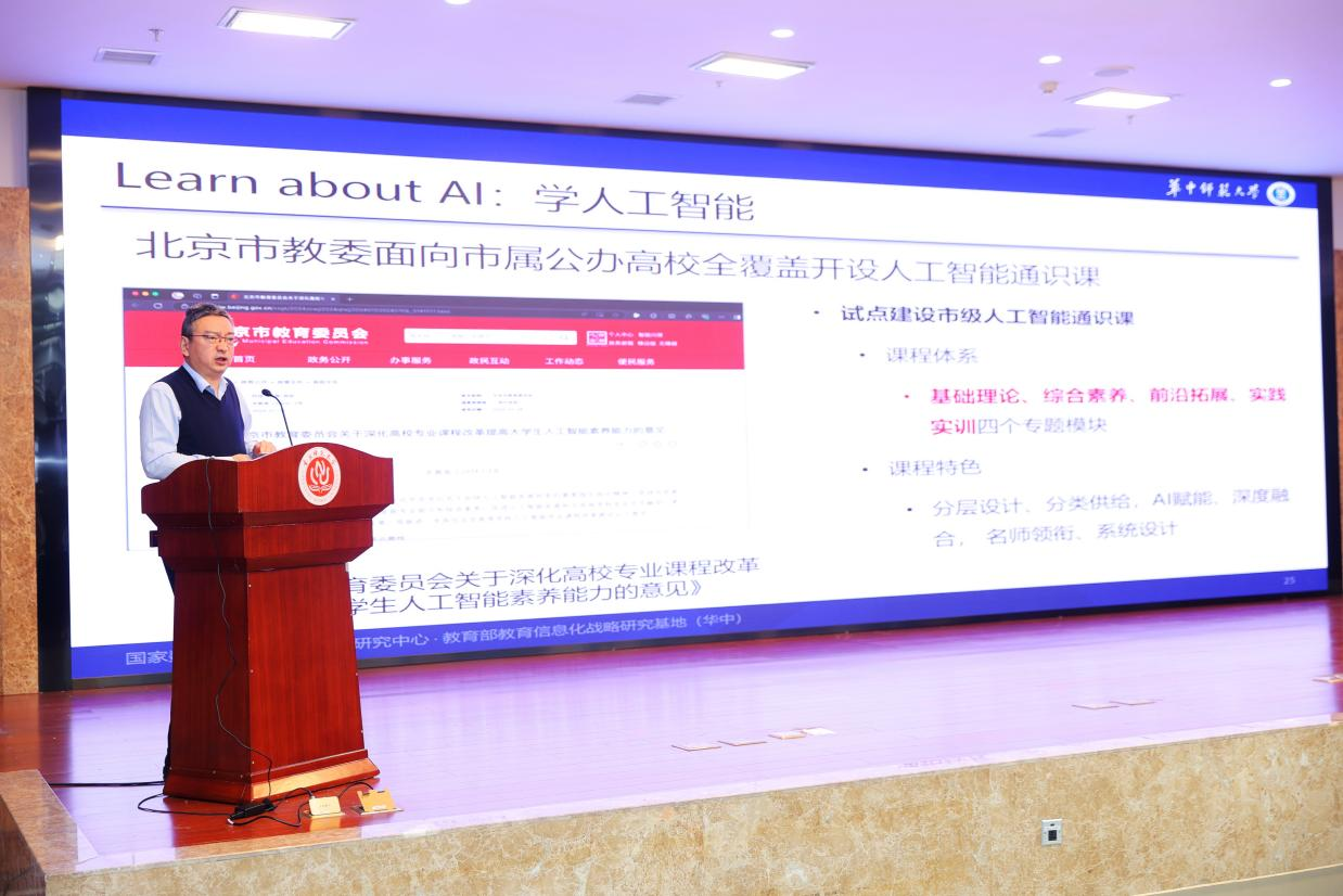 “人工智能是开辟教育发展赛道和塑造教育优势的一个重要突破口。”吴砥教授作了《智能技术与教育的融合发展》主题报告,他谈到,智能技术对教育改革带来深刻影响,尤其是通用人工智能大模型的普及,对教育的环境、内容、方法等各方面都带来改变。教育系统必须正视这一形势,及时推进改革,构建全新的教育体系,培养适应数字时代、智能时代需要的人才。介绍了智能技术对教育的影响,旨在分析其发展规律,探讨创新路径,研判发展趋势。