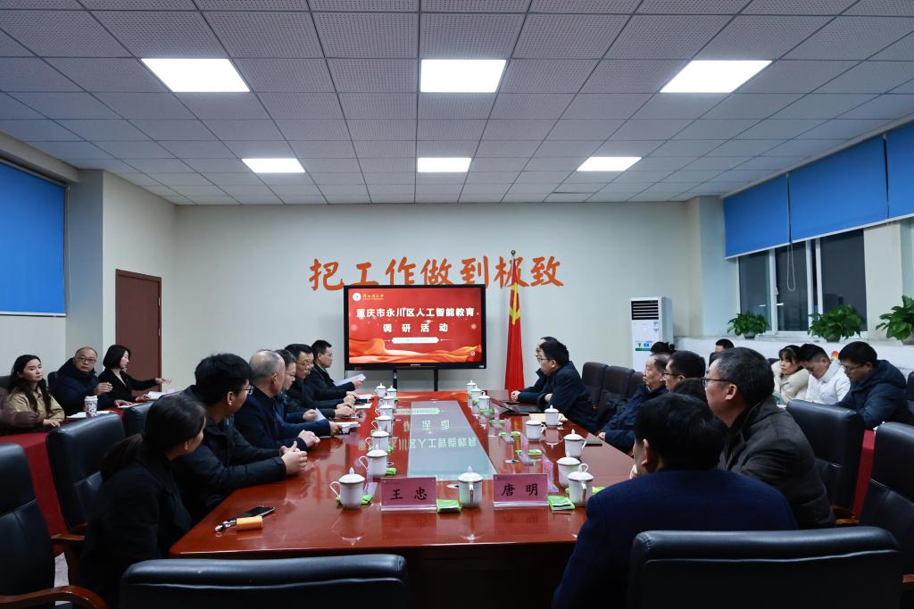 永川区教委副主任陈启寨和相关职能部门领导全程参与调研,陈主任表示,此次调研揭开了区域AI教育改革的序幕:"我们将设立一批实验学校,在2025年秋季学期率先试行‘双师课堂’模式,由高校远程协助课堂教学,同时启动教师AI素养全员测评。"