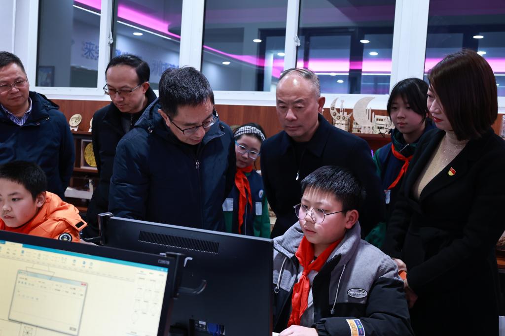 调研活动分别在两所学校的校园文化展示区、现代化体育馆、元宇宙感知实验室、航模室、激光切割室与3D打印、科技感女娲梦创空间等地有序展开沿途,学生精彩的机器狗互动、无人机表演、机器人跳舞等,彰显了学校完善的数智教育硬件和精心打造的创客特色教育环境。