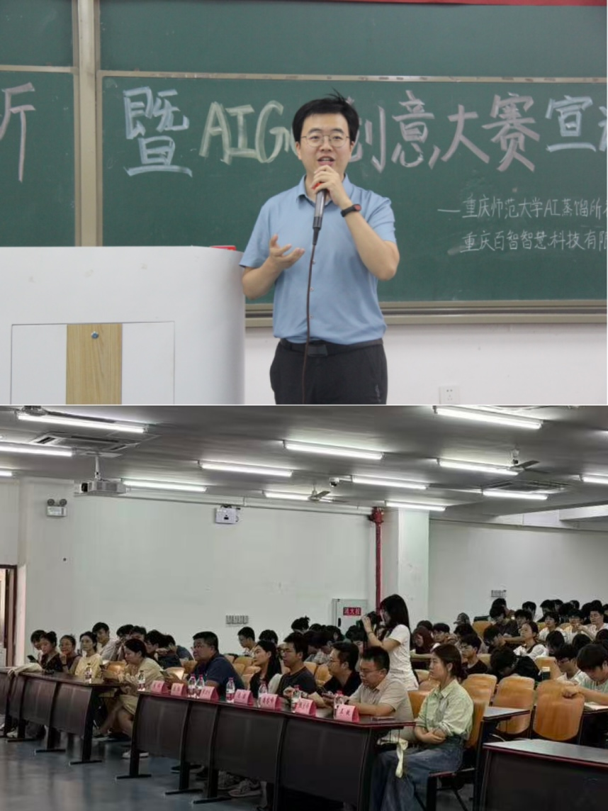 在砺志楼T2113教室举办了“AI蒸馏所重师站招新暨AIGC创意大赛宣讲会”。活动由重庆师范大学“AI蒸馏所”主办,重庆百智智慧科技有限公司支持。出席本次活动的嘉宾有麻将游戏网页版