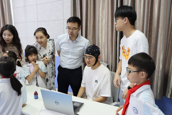 近日,重庆师范大学智慧教育研究院携手我校附属中小学,首次将功能性近红外光谱技术(fNIRS)脑成像实验引入学校课堂,开创了科教协同育人的创新实践。被试学生在专业研究人员指导下,通过佩戴便携式fNIRS设备,在观看教学视频、完成认知任务的过程中,首次直观地感受到自己大脑处理信息的动态变化。这种“看得见”的科学体验打破了传统课堂的边界,将抽象的理论转化为生动的实践,极大地激发了青少年对脑科学与认知研究的兴趣。