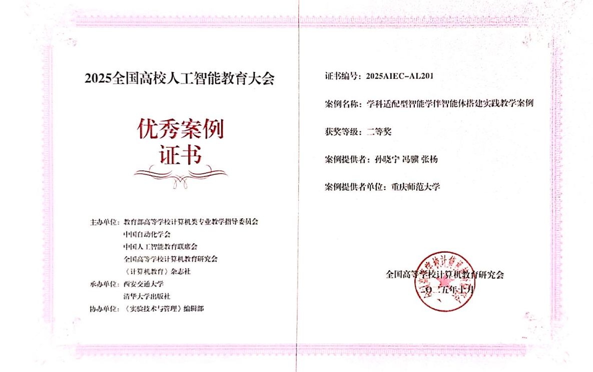 教师孙晓宁、冯骥、张杨提交的《学科适配型智能学伴智能体搭建实践教学案例》荣获课程教学案例二等奖,体现了麻将游戏网页版