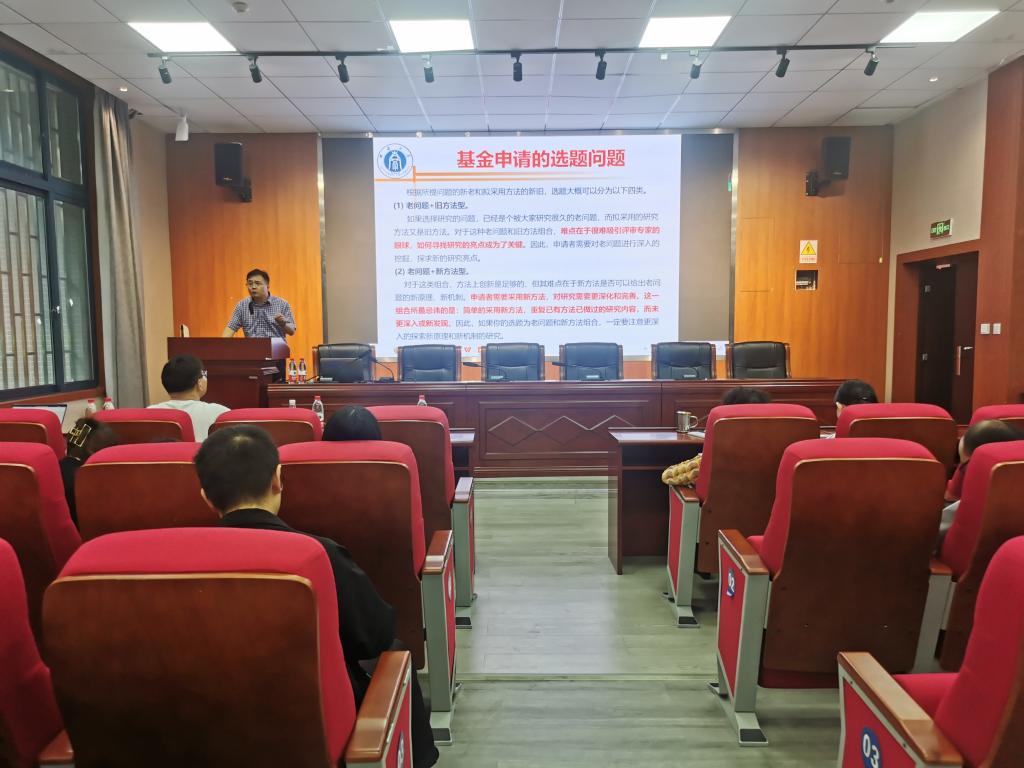 报告开始前,崔少国对徐伟华教授表示诚挚欢迎,并对其科研方向和近年来的学术成果进行了介绍。随后,徐伟华教授从科学研究的意义入手,围绕国家基金申报指南,分析近几年的关键数据,以相关领域优秀国家基金的申报书为案例,从申报前的准备工作、选题、关键问题、创新性以及基金申请的体会等多个方面对国家自然科学基金项目的申报做讲解,并从学科热点、前沿进展、申报领域等方面指导国家自然科学基金撰写技巧及注意事项。最后,他还为大家罗列了推荐书目,以便进一步深入学习。