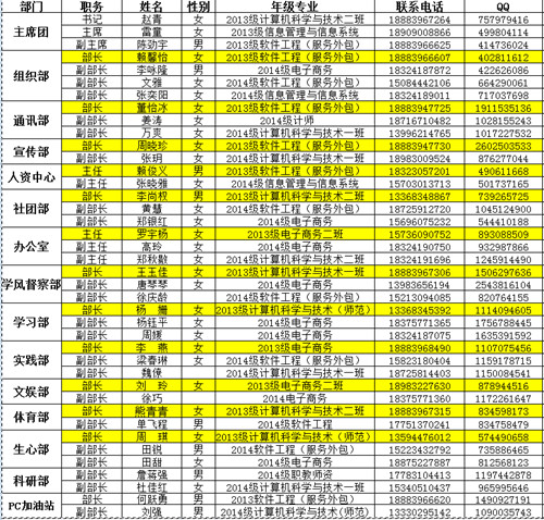 麻将游戏网页版 第七届团总支学生会干部通讯录