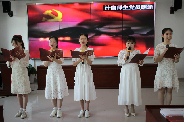 陈兰书记、叶青老师和青马班代表周杰也向大家推荐了好书,并鼓励大家读好书,好学习,树好德,做好人。学生第三支部书记钟华老师带领党员学生周芹、刘佳、向瑞、孙杰带来诗歌朗诵《我是一艘船》,将课程推向了高潮。她们充沛饱满的感情、铿锵有力的朗诵展现出计信师生良好的精神风貌。