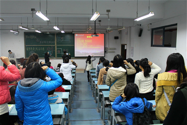 大会首先由朱嘉洁老师发言。她表达了对新成员的恭喜和期望,介绍了“青马工程”的内容。14级辅导员姜扬老师宣读第五期青马班培训人员名单。随后团总支学生会书记张聪杰从修德、明辨、学习、工作这四个方面来与大家分享了个人感悟,引起听者对未来的思考。而第五期青马工程学员14级学生代表徐焱则表达了对培训的期待和信心。最后由朱嘉洁老师给上一期青马班两位负责人和三位班委颁发聘书,傅帆老师、姜扬老师给12级、13级青马毕业生颁发结业证书。开班仪式在庄严的宣誓中落下帷幕结束。
