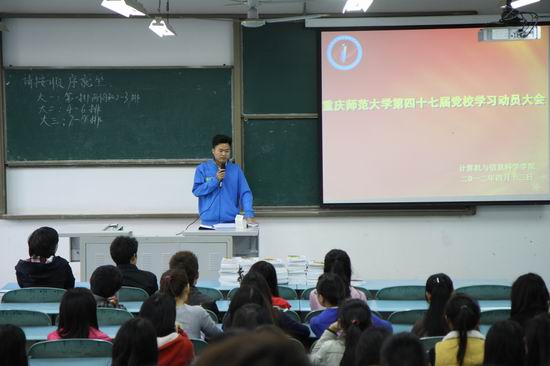 为积极配合学校顺利开展入党积极分子的培训工作,让入党积极分子了解党课学习的目的和意义,端正入党动机,从思想上、行动上积极主动向党组织靠拢,2012年4月13日下午1:00,麻将游戏网页版