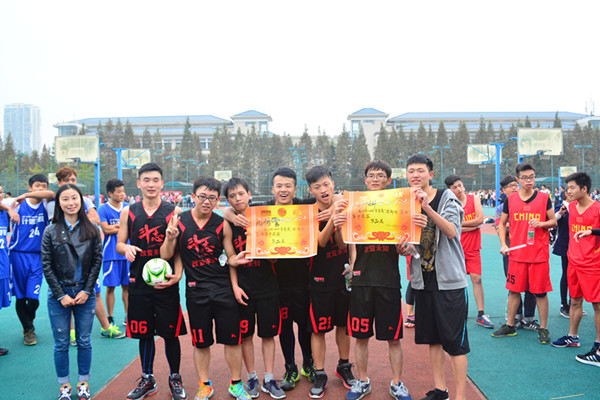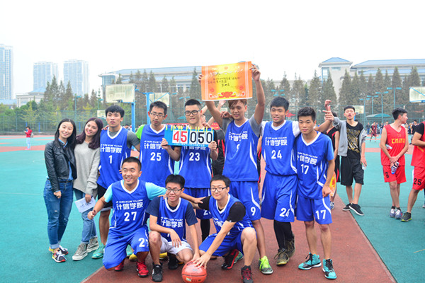 下图为“迎新杯”篮球比赛前四名团队合影