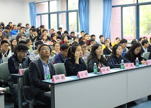 从14级开始,各支部通过介绍支部基本情况,支部建设,支部活动,支部荣誉,学业情况以及英语四级、计算机二级过级情况等方面对支部2014年的发展状况进行了解说介绍。各年级团支书充分利用了专业的优势,制作了精美的PPT以及视频,通过自己的演讲,将各个团结和谐的支部风貌展示在大家面前,令观众深深叹服。各支书演示内容衔接连贯,层次分明,充分显示了各个支部的工作能力之高。此次院述职中各团支书都充分展示了本支部的特色和创新,各类证书奖状十分丰富,这显示着各支部有雄厚的实力和众多不可小觑的人才。各位团支书精彩亮相,在五六分钟的时间里她们充分展示了其支部昂扬向上、乐观积极的精神风貌,她们的演讲声情并茂,极具的感染力,12级信管班的团支书的演讲将全场气氛推向高潮,她的演讲获得了格外热烈的掌声。各位团支书的好口才打动了在场的所有观众,每一位团支书述职完毕之后他们都献上了热烈的掌声。团支书述职完毕后,全场的所有团支书及主持人的拍照留念,历时三个小时的支部达标定级大会完美的落下帷幕。