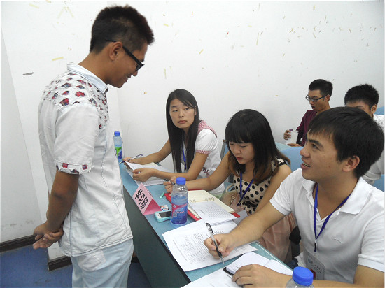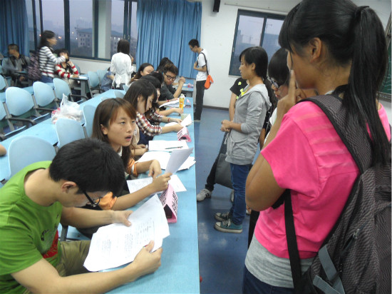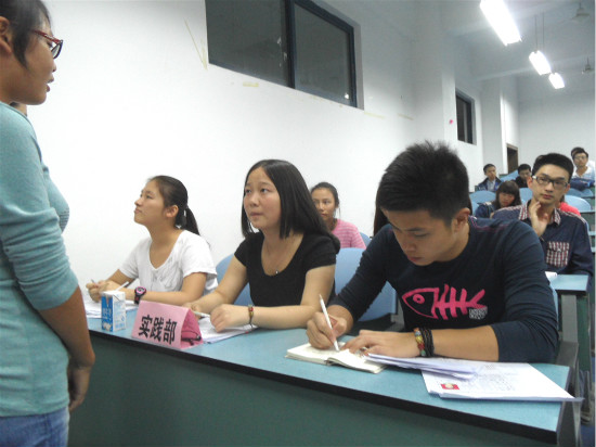 此次招新采用分部门面试的方式进行。分别由各部门部长和副部长担任面试官,主席与书记负责协调和督导各部门工作。同学们根据自己爱好和特长积极申请加入各部门。不论是填写报名表的认真,还是等待进入面试的紧张,都充分体现了同学们对这次招新活动的重视,同时也表现了自身的良好素质。在面试过程中,同学们都拿出自己的“看家本领”,从容自信的与面试官进行交流。而各位部长与副部也根据同学们的自我介绍有针对性的提出一些问题来深入了解和考查应试者。整个面试过程持续了近三个小时,竞争程度异激烈常。。最后,面试官结合本次应试者的综合表现,经过仔细思考讨论和沟通协商,最终确定了各个部门的人员录用。