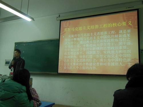 团总支副书记张敬老师传授学生骨干们青马工程的理论创新成果,为提高思想政治素质,坚定理想信念打好基础。