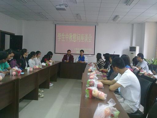 党总支副书记杨宇、团总支副书记张敬、11级辅导员孙柳艳、12级辅导员傅帆老师于2012年9月29日中午与30名各专业贫困学生代表在集贤楼233会议室度过了一个师生情浓的中秋节,而且麻将游戏网页版