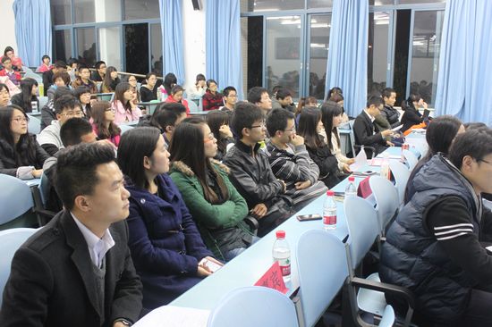 张敬老师上台作了精彩的致辞后,主持人宣布比赛正式开始。上半场是软工专业对阵信管专业,双方就“网络使人离事实更远”还是“网络使人离事实更近”展开了激烈的角逐,他们各自都派上了自己最强大的阵容,台上选手个个信心十足,在比赛过程中,辩手们极力配合默契,他们妙语连珠,当仁不让,争锋相对,牢牢坚持自己的观点,台下的观众也很激动,掌声不断,喝彩声连绵起伏。最后,软工获胜,汤玉梅获得了最佳辩手的光荣称号,评委幸定军对比赛作了精彩的点评。