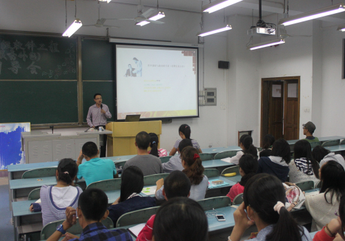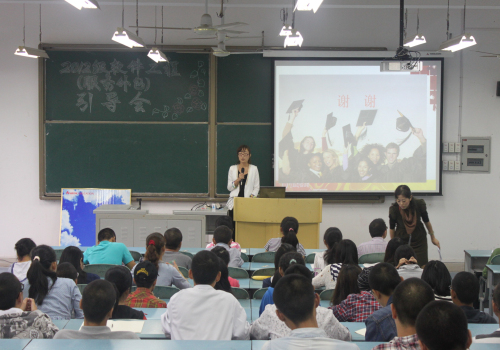 与安博教育集团的联合培养,旨在造就一批能够适应计算机软件技术快速发展的多层次、复合型、应用型软件工程技术和管理人才。首先安博教育集团刘姝彤老师致引导词开始议程,随后安博教育廖枫老师为同学们讲解了服务外包的前景,安博教学主管徒峰从“大学四年如何度过、服务外包是什么专业、服务外包有什么优势”三个方面向大家作了详细的介绍,并向新生展示上届学生的优秀作品,激发新生对于本专业的学习热情。接下来,由2011级软件工程(服务外包)专业的赵阅同学作为老生代表,与新生在学习、生活两方面做了深入的沟通交流,以过来人的身份教导同学们应当珍惜经历了十年寒窗苦读,一朝中举的来之不易的大学时光。