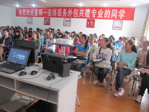 上午9:00,活动在主持人播放完安博“司歌”,并介绍到场嘉宾后准时开始。安博教育集团金琦校长首先致辞,指明安博与企业联合,力图为学生创建实践基地,使学生了解企业运营基本知识、企业环境及文化氛围,提前做好就业准备。并鼓励大家怀揣梦想,立志成才。