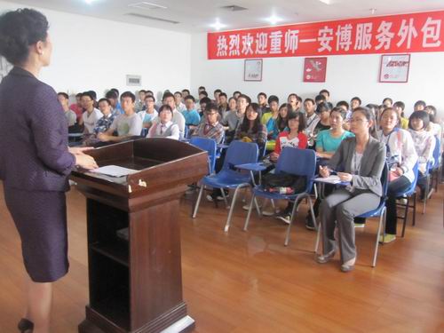 随后,惠普全球软件交付中心赵庆经理介绍了惠普概况,并与在座学生分享了自己12年的职场经验。据了解,赵经理自10年开始便担任重庆惠普研发中心的实习生管理负责人,曾计划、组织和实施了实习生从选拔到招聘、从入职到培训的全过程,对员工的职业发展有着透彻的理解。讲解中,他主要谈到惠普在中国的概况及其在行业、能力、语言等多方面的优势,图文并茂地为大家展示了惠普的现状与成就。“TSP/PSP系统”“CMMI level 5”“PCMM”“在岸、靠岸、离岸”等专业术语让新生饶有兴致地边听边做好笔记。他最后重点强调大学生要做好职业生涯规划,结合自己的职业生涯目标,才能使大学的学习更加有效,赢在起跑线上。接下来,惠普实习生负责人给大家介绍了惠普的平台、福利以及各项政策,进一步为大家现场答疑。