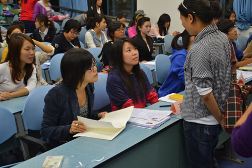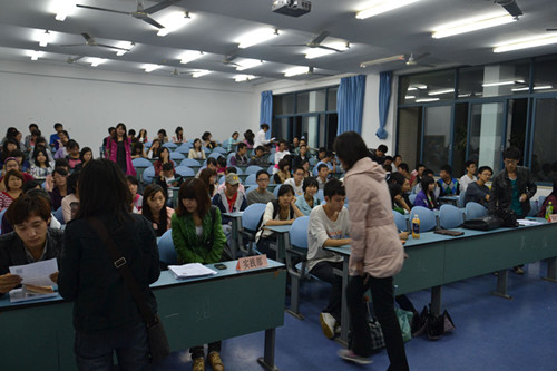 与往年相比,本次招新工作的规模有所扩大且准备更加充分:早在国庆长假前,团总支学生会已作了大量的招新宣传与筹划安排,这显然更有利于11级新生通过综合考虑作出理性选择,明确应聘目标。活动现场,各部门负责人分坐前排,对前来应聘的新生进行面试。“面试官们”严谨耐心,“面试者们”各尽其能,场面竞争气氛浓烈且秩序井然。
