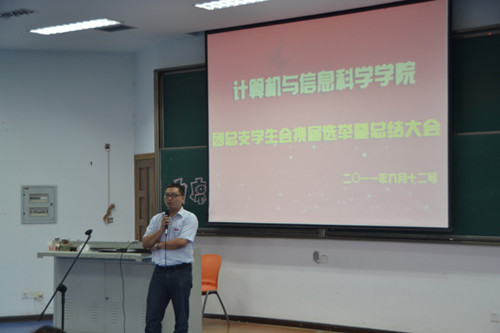 迎来了“送旧迎新,继往开来”的时刻——第二届团学会总结暨第三届团学会主席团竞选大会召开,院党总支副书记杨宇、团总支副书记张敬以及09、10级辅导员作为本次大会的嘉宾应邀出席。大会由第二届团学会主席杜斌主持。