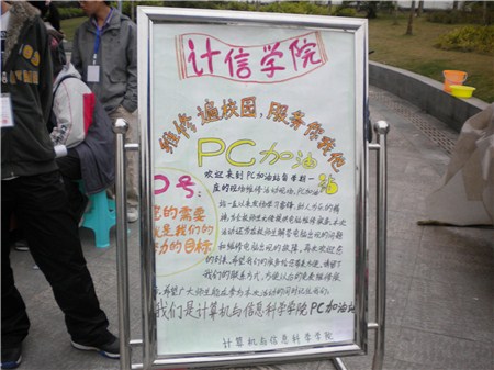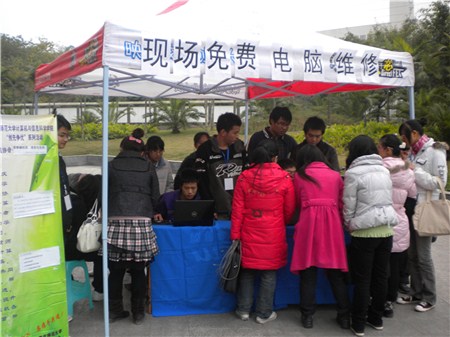 PC加油站联合计算机协会全体成员于2010年12月9日下午在重师三食堂前举行了“维修遍校园,服务你我他”的电脑现场维修活动。