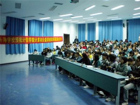 对计算机等级考试感兴趣的同学汇聚一堂,对讲座满怀期待。晚上7:00,讲座在主持人对主讲人进行了简要的介绍后正式开始。赵老师以其通俗易懂的语言特点和风趣诙谐的讲解风格将同学们带入了讲座的主题中,他将一个个生动的例子信手拈来,使大家真正领会到程序设计的奥妙与乐趣。最具代表性的是把数组的应用与房子的建筑联系起来,进行了深入浅出的剖析讲解,赢得同学们的阵阵掌声。