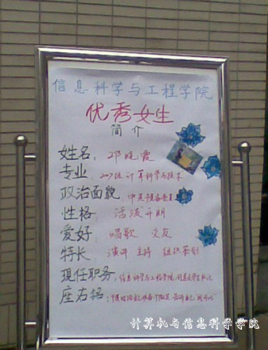 07级的两名女生邓晓霞和李海燕以她们优异的成绩和先进的个人事迹引来了过往女生的参观和称赞。“风采转转转”是为了增强各院交流、突出本院特色,展现本院女生风采的特色节目。麻将游戏网页版