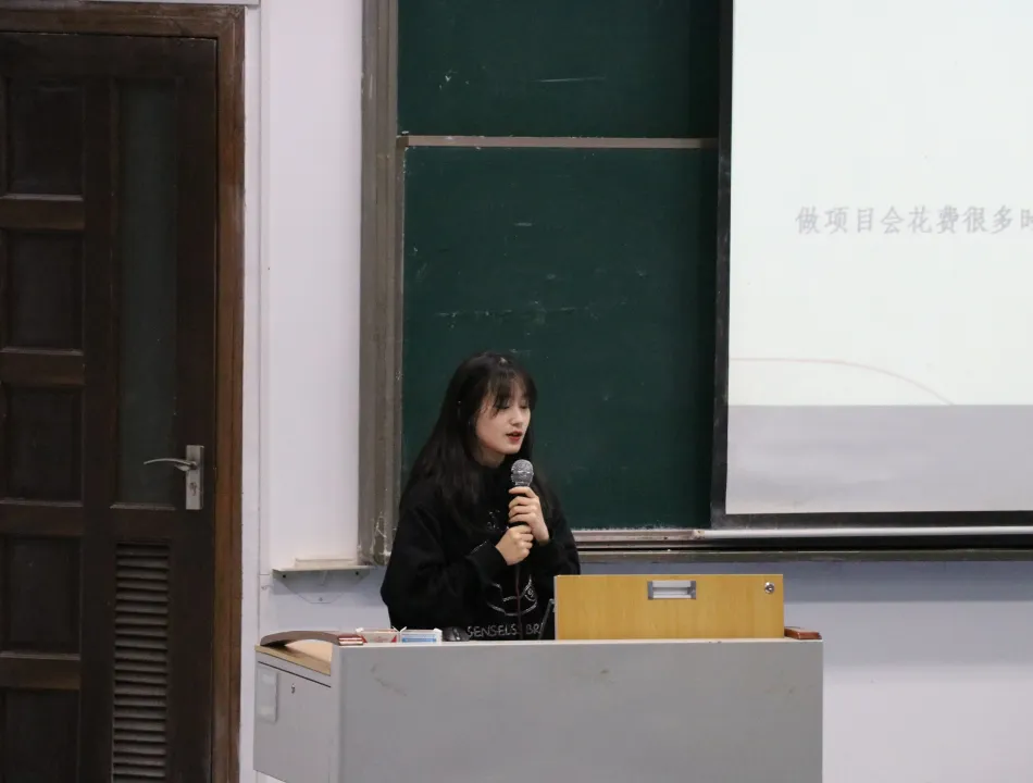 勾艺洁同学介绍了智科专业的简介、政策、师资等方面,以及智科的小班教学模式,在参加项目方面的各种优势。她谈到在大学期间要多参加各种竞赛,积累比赛经验。在竞赛方面,勾艺洁提出了几点建议,在大一时就可以去了解竞赛,参加项目,通过丰富的比赛经历来提高自己的能力。