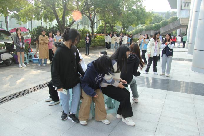 学生心理中心统筹策划,20多名志愿者参与协助。活动共开展“成语接龙”、“默契大挑战”、“勇于承担责任”、“抢凳子”等4个小游戏,有近100名同学积极参与。活动开展前,参与活动学生熟悉游戏规则,并且按照工作人员指定的游戏位置有序准备开始游戏。活动开展时,小组成员开始为时3分钟的“成语接龙”团队游戏,在紧迫的时间内同学们积极发挥自己所储备的词库争取为小组得到更高的积分;接着进行“默契大挑战”团队游戏,小组成员根据工作人员的指令需同时做出正确的动作,此过程考察小组成员在未有商量的前提下能否有十足的默契完成挑战;随后进行“勇于担责”团队游戏,小组成员根据工作人员的指令做出相应的动作,此过程小组成员需尽自己最大努力不被淘汰争取为小组得到更高的积分。随后,工作人员组织“抢凳子”个人游戏,活动氛围达到高潮。活动结束后得到数名同学们的反馈:好玩爱玩还想玩,希望能多举办类似活动;工作人员也了解到活动中素不相识的二人也因此开始了一段新的友谊。这也是“快乐大学生”团辅活动的举办初衷。