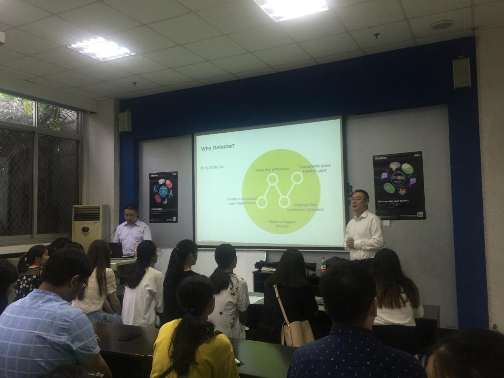 于2017年9月12日10:00在重庆师范大学沙坪坝校区二教学楼2013教室开展了“德勤全球交付中心校园招聘会”。本次宣讲会由德勤DGC企业管理咨询部门负责人主讲,计信麻将游戏网页版