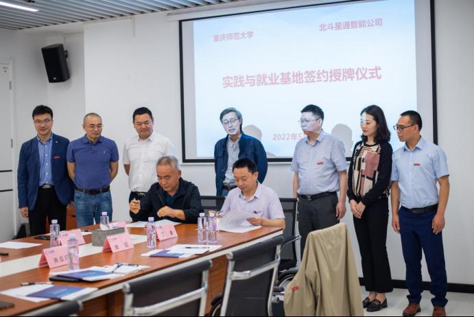 随后,重庆师范大学党委常委、纪委书记肖应红与北斗星通重庆分公司总经理李绍云签署了“实践与就业基地”协议并授牌。