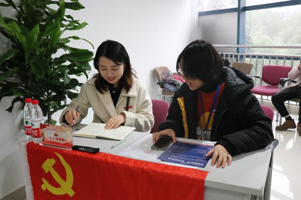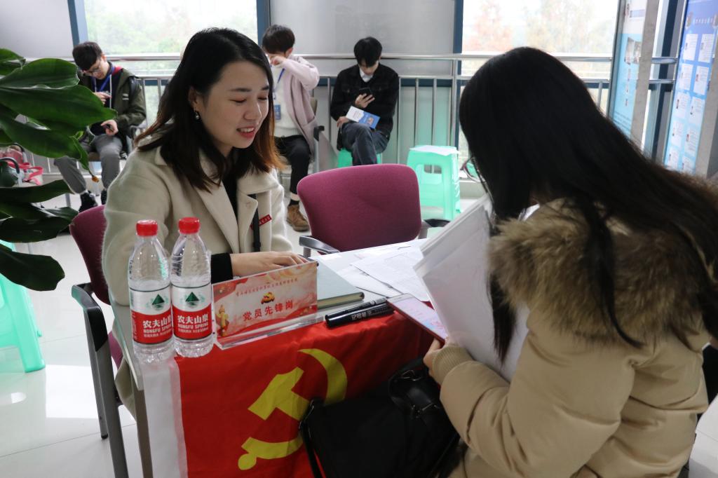 2020届毕业生双选会上,设置“党员先锋岗”,几十名学生党员投入双选会志愿者工作,为30余家企业和300多名毕业生提供热心、贴心的接待与就业指导等服务。