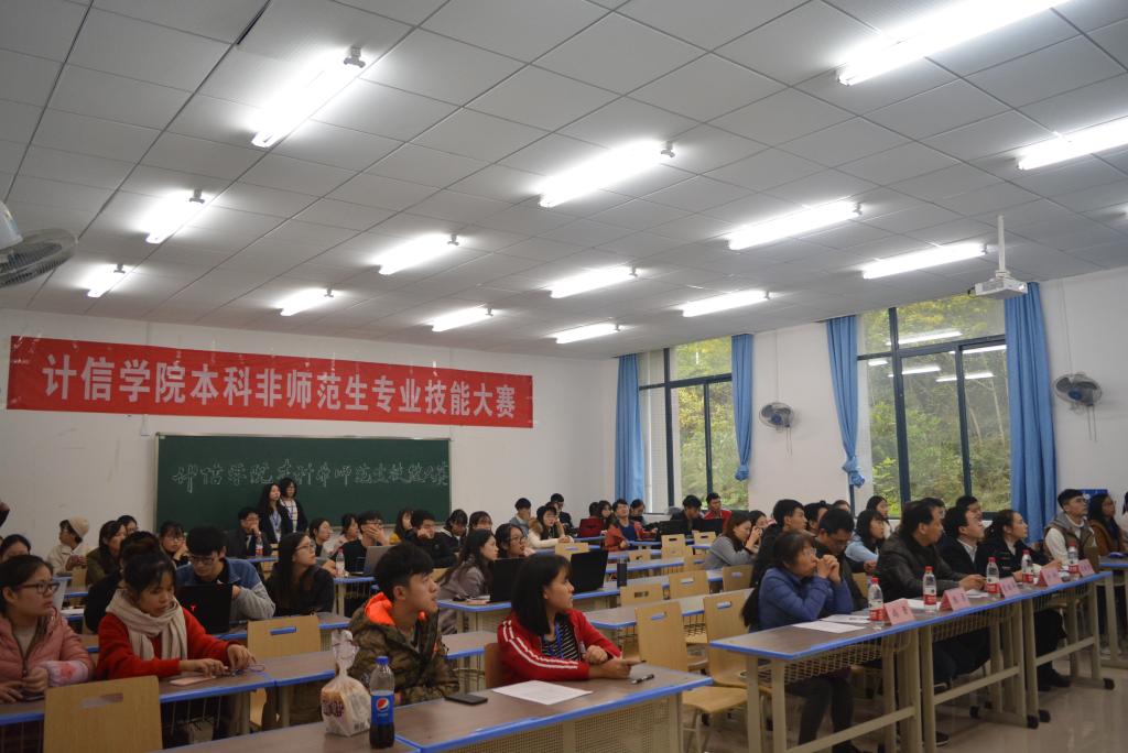 为了强化学生的技能训练,提高学生实践和创新能力,检验专业实践教学效果,展示专业风采,实现技能养成、学科竞赛、学生就业的有机统一。2018年11月15日15:00,麻将游戏网页版 在汇贤楼109教室开展了由团学会学习部主办、科研部协办的本科非师范生技能大赛。麻将游戏网页版 曾绍华老师、陈勇老师、沙轩老师、尚晋老师、兰晓红老师担任大赛评委。学习部副部尹世兴主持本次比赛。