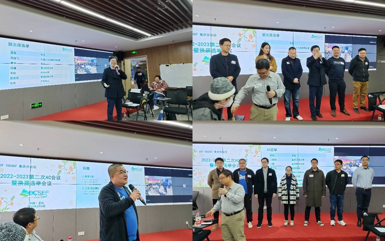 教师冯骥、肖颗和宋婷婷也受邀参加。在经过无记名投票和差额竞选后,冯骥老师当选2023-2024届CCF YOCSEF重庆副主席,肖颗老师当选学术委员(AC委员)。